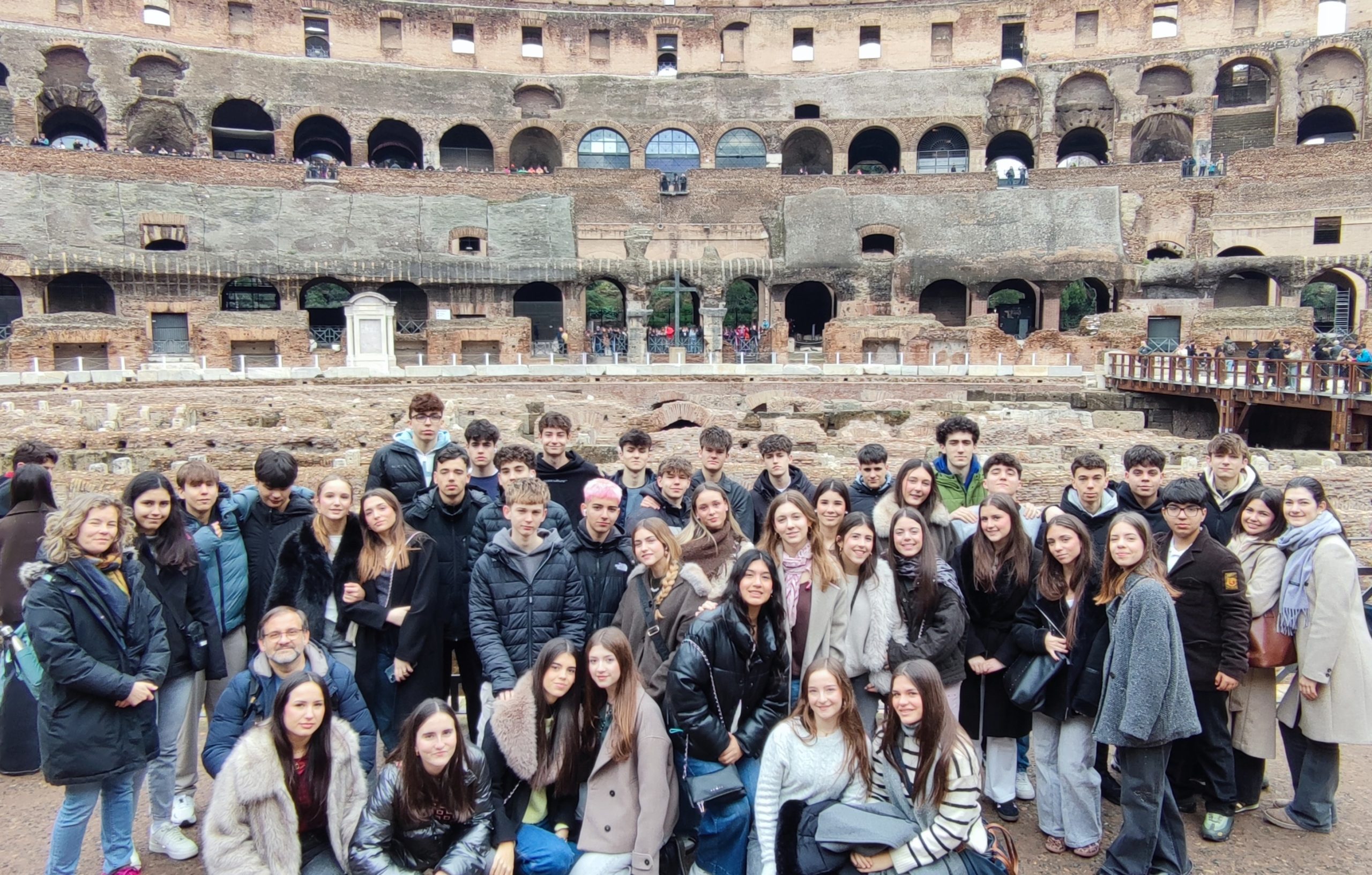 Poco después de Reyes, comenzamos nuestro viaje de estudios de Bachillerato a Roma. Salimos de Zaragoza la madrugada del lunes y, a mediodía, ya estábamos en la ciudad eterna. Dejamos las maletas en el hotel y dimos una fantástica vuelta hacia Villa Borghese y Plaza del Popolo. No obstante, antes de llegar, hicimos parada en la Plaza de España para visitar el Collegio San Giuseppe – Instituto De Merode, uno de los centros lasalianos más reconocidos de Roma.