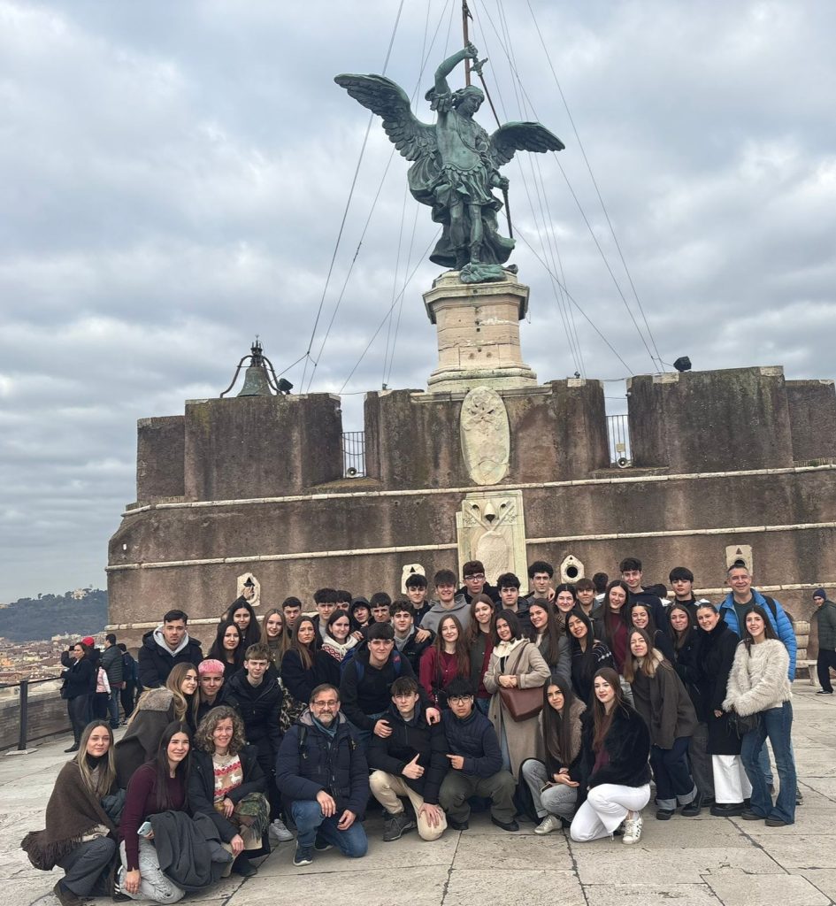 Poco después de Reyes, comenzamos nuestro viaje de estudios de Bachillerato a Roma. Salimos de Zaragoza la madrugada del lunes y, a mediodía, ya estábamos en la ciudad eterna. Dejamos las maletas en el hotel y dimos una fantástica vuelta hacia Villa Borghese y Plaza del Popolo. No obstante, antes de llegar, hicimos parada en la Plaza de España para visitar el Collegio San Giuseppe – Instituto De Merode, uno de los centros lasalianos más reconocidos de Roma.